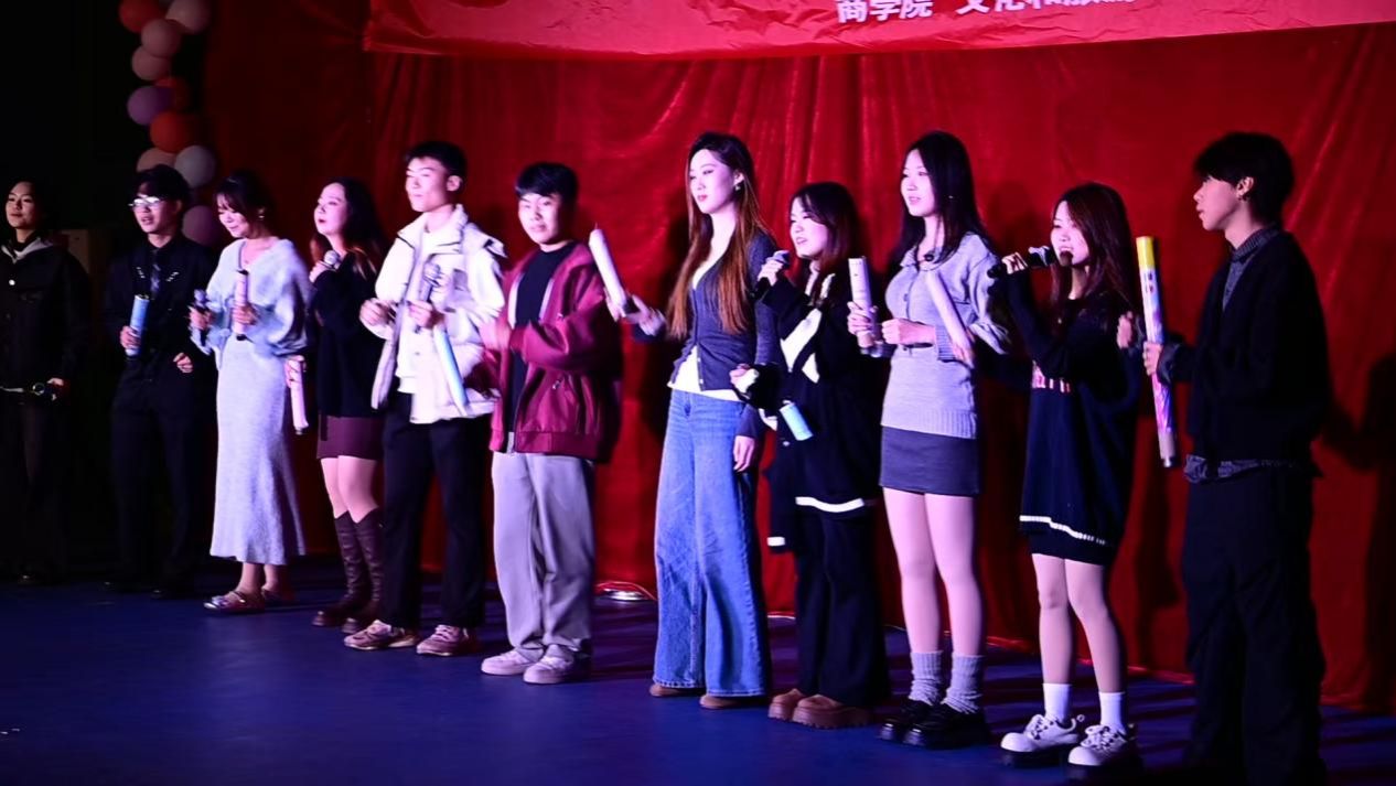 中场环节,管理科学与工程学院和商学院的舞者们还分别带来了《Gee》《Famous&wicked》《Mr Chu》等舞蹈表演,以动感舞步点燃全场,展现了学子们的多元才艺。此外,商学院声乐部主席李岩烨的独唱《听雨落下的声音》以及尾声部分的三院大合唱《像你这样的朋友》,更是将现场的氛围推向了一个又一个高潮,温情与感动弥漫整个赛场。