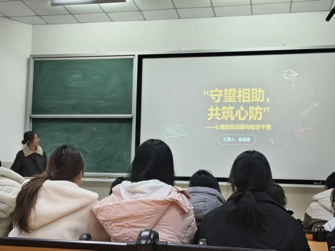 本次培训由学院心理服务协会核心成员吴孟瑶担任主讲人。此外,还特邀指导老师王明扬全程参与指导,其深厚的专业积累与丰富的实战经验,为在场学员带来了宝贵启发。活动现场,40名班级“心灵使者”及心理学爱好者齐聚一堂,以“未来护航员”的身份全情投入,在积极互动中充分展现了新时代青年学子的责任感与饱满热情。