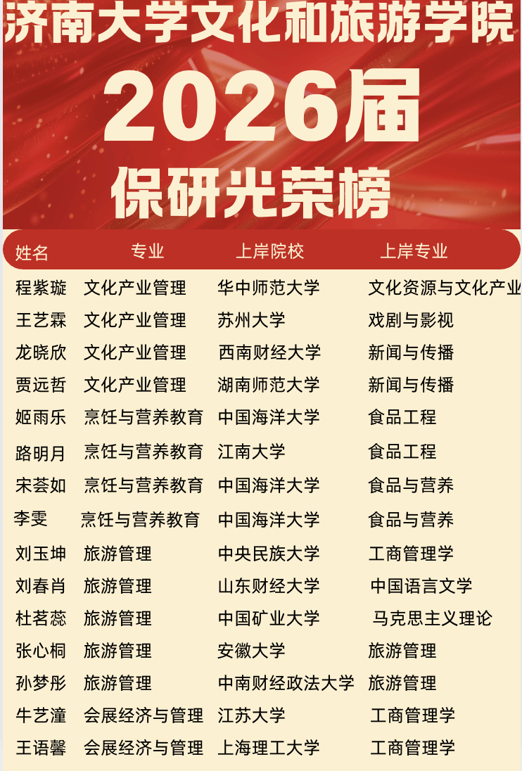 秋风送爽,捷报频传。英国上市公司365多位学子凭借优异表现,成功获得硕士推免资格,即将开启新的学术征程。 这份保研荣誉榜,是学子们奋斗的见证,更是学院育人成果的生动彰显,为学弟学妹们树立了奋进榜样,也激励着更多文旅学子逐梦前行!